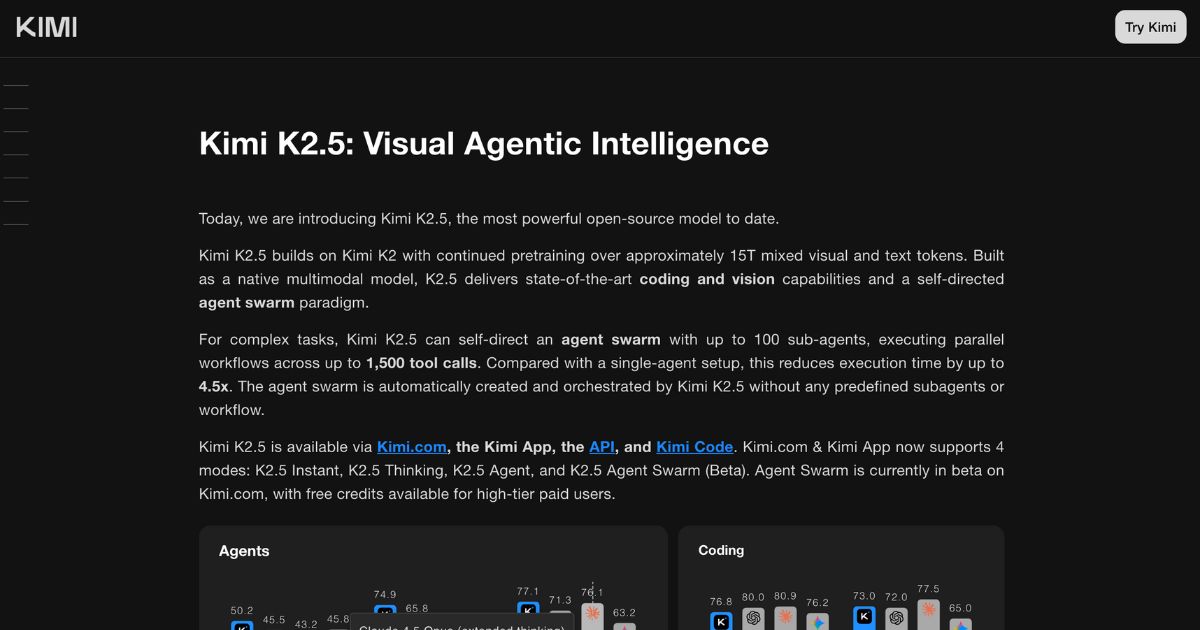 - ব্যাপকভাবে সমান্তরাল কাজের জন্য এজেন্ট ঝাঁক: মডেলটিতে একটি মাল্টি-এজেন্ট সিস্টেম রয়েছে যা সমান্তরালভাবে কাজ করে 100টি উপ-এজেন্ট পর্যন্ত স্ব-নির্দেশিত করতে সক্ষম। বড় আকারের গবেষণা, দীর্ঘ ফর্ম্যাট লেখা এবং ব্যাচ ডাউনলোডগুলি পরিচালনা করার সময় এই পদ্ধতিটি সম্পাদনের সময় 4.5 গুণ পর্যন্ত কমিয়ে দেয়।